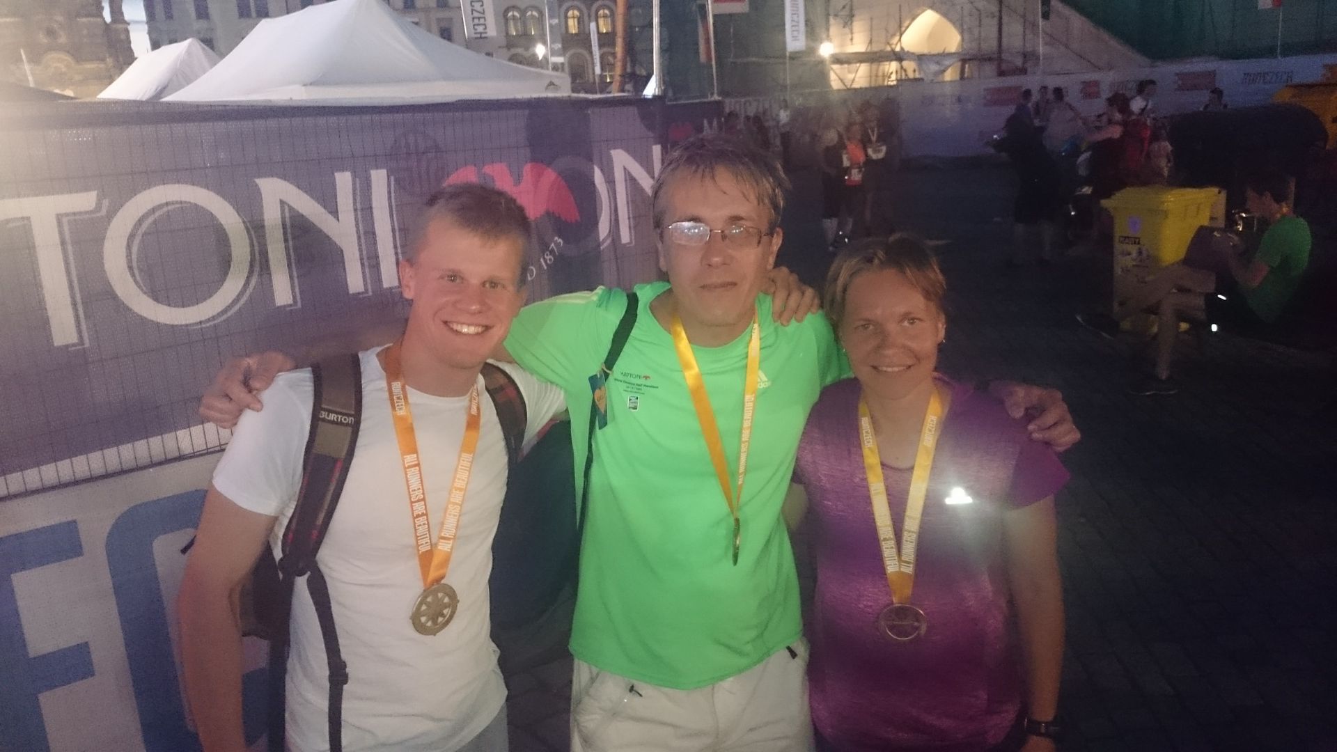 Petra Seberová a bratři Kučerové, kolegové z bývalé tréninkové skupiny. Vpravo Jarek Kundrát chvíli po startu
